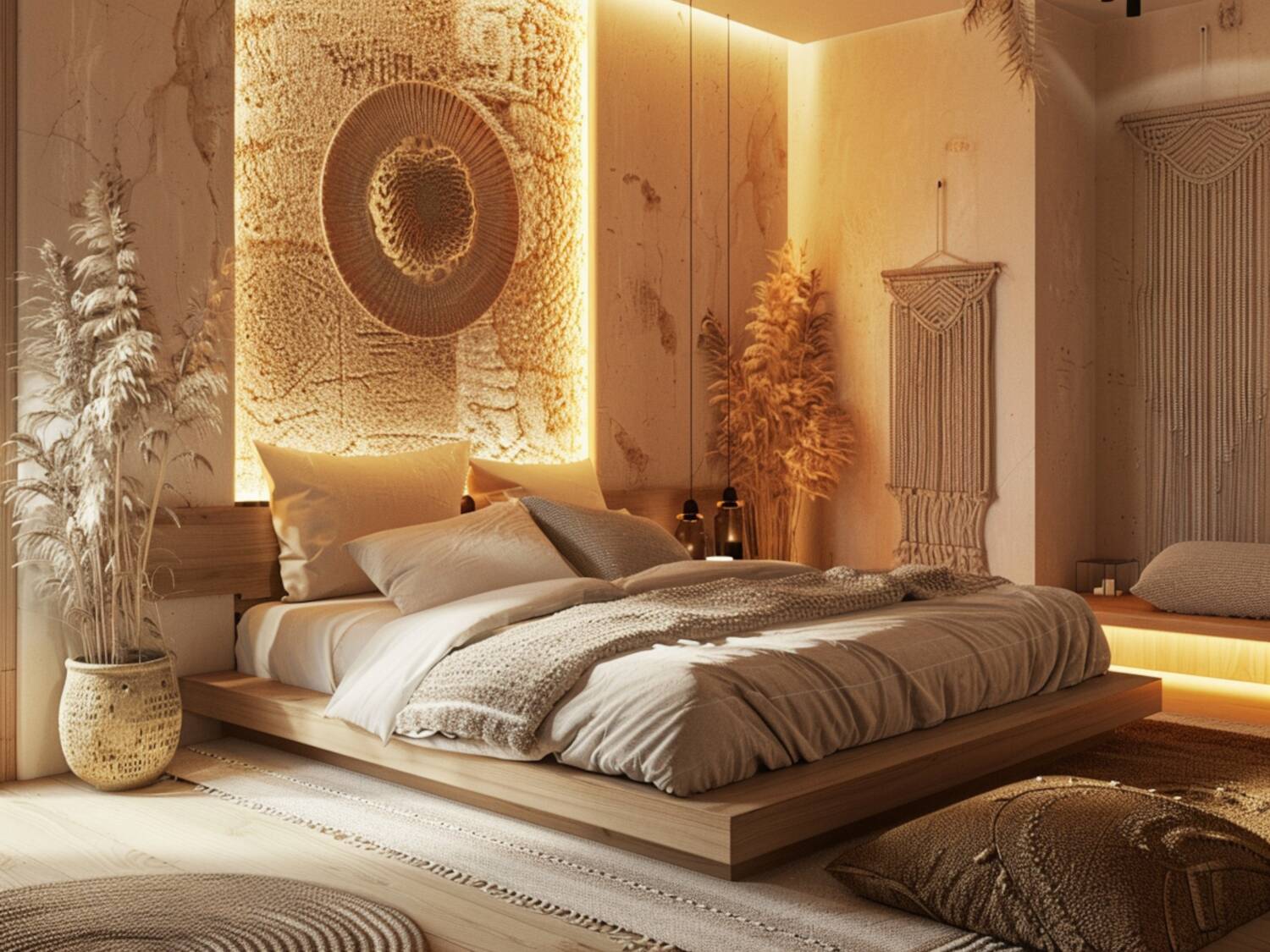 W sypialni w stylu boho idealnie sprawdzi się łóżko z regulowanym zagłówkiem i wbudowanym systemem masażu.