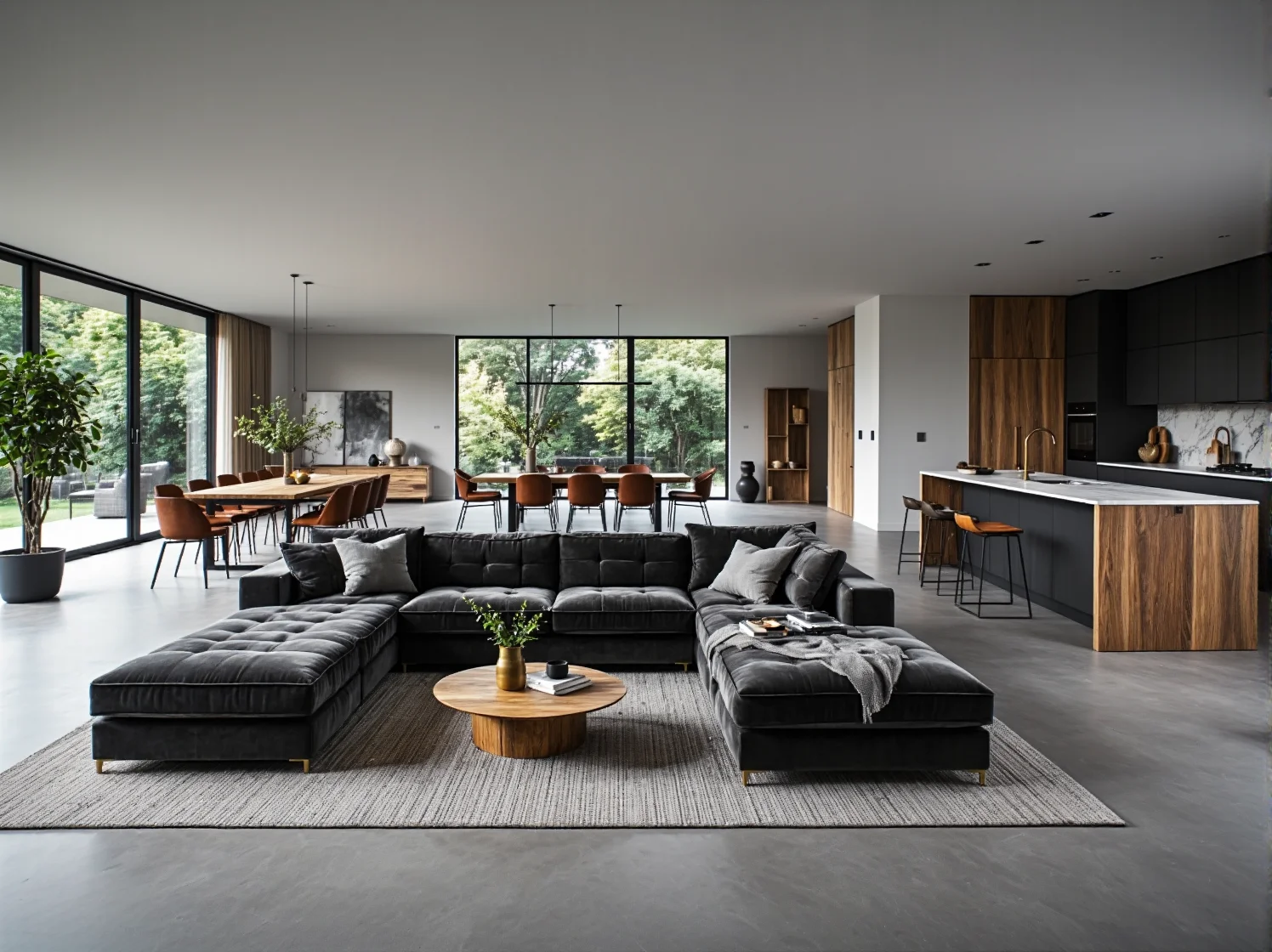 Brak ścian działowych nie oznacza braku granic. W otwartej przestrzeni funkcje poszczególnych stref wydzielamy za pomocą mebli, oświetlenia i tekstur. Meble premium nadają się do tego idealnie ze względu na swoją masywność i prezencję.